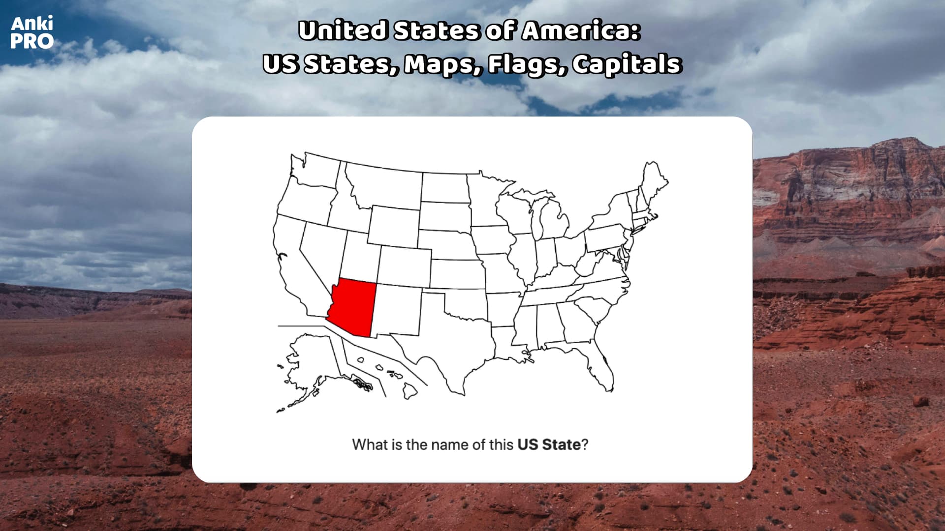 Another deck about the USA geography. Maps are added to activate your visual memory and improve the understanding of the locations. And in the same with flags and locations of the states you learn the capitals. Isn’t this flag Flashcards deck really helpful?