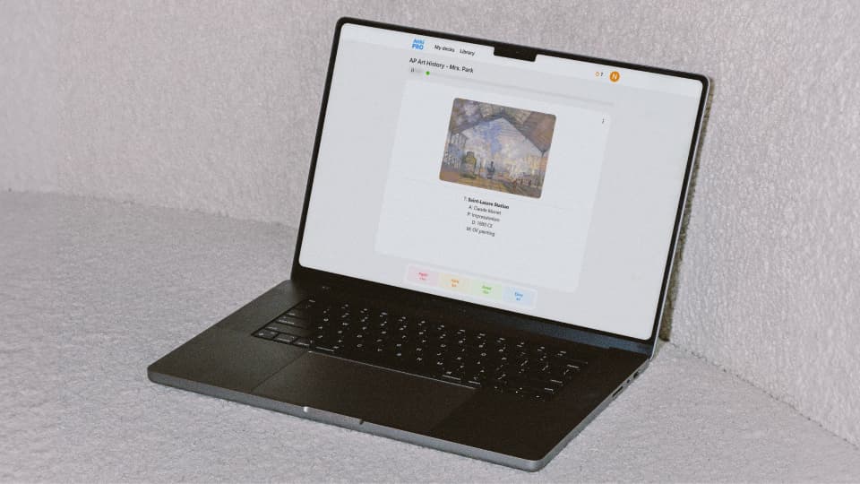 There are several premade flashcard decks you can use from Noji AP Art History – Mrs. Park covers all important artworks mentioned in the exam and you can use the deck in addition to your studies.